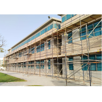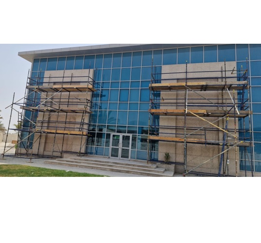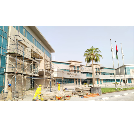 ACCESS SCAFFOLDING WORK AT ADNOC SCHOOL - FACADE GRANITE REPLACEMENT - SAS AL NAKHL, KHALIFA CITY, ABU DHABI, UAE.