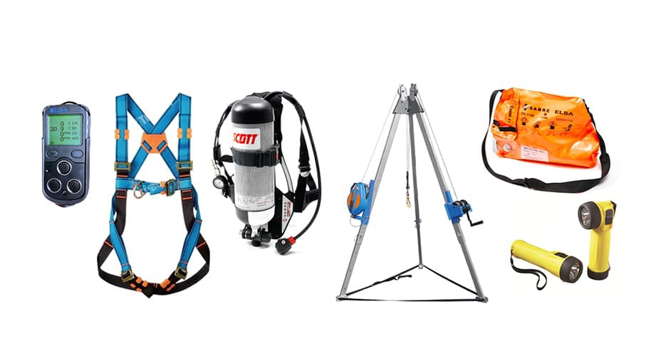 Confined space equipment ensures safety when working in enclosed areas with risks like toxic gases or low oxygen. Key equipment includes: